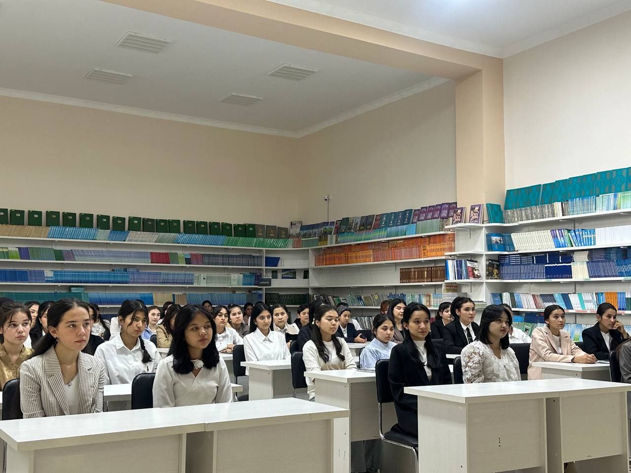 The event featured renowned poets and writers Amir Xudoyberdi and Gulandom Tog'ayeva. During the event, a discussion was held aimed at enhancing students' love for literature and poetry, as well as raising awareness about the lives and achievements of our esteemed poets, which helps in further developing their own creativity. At the end of the event, the creators and proactive students recited excerpts from the poets' works, and the students received autographs from the poets.